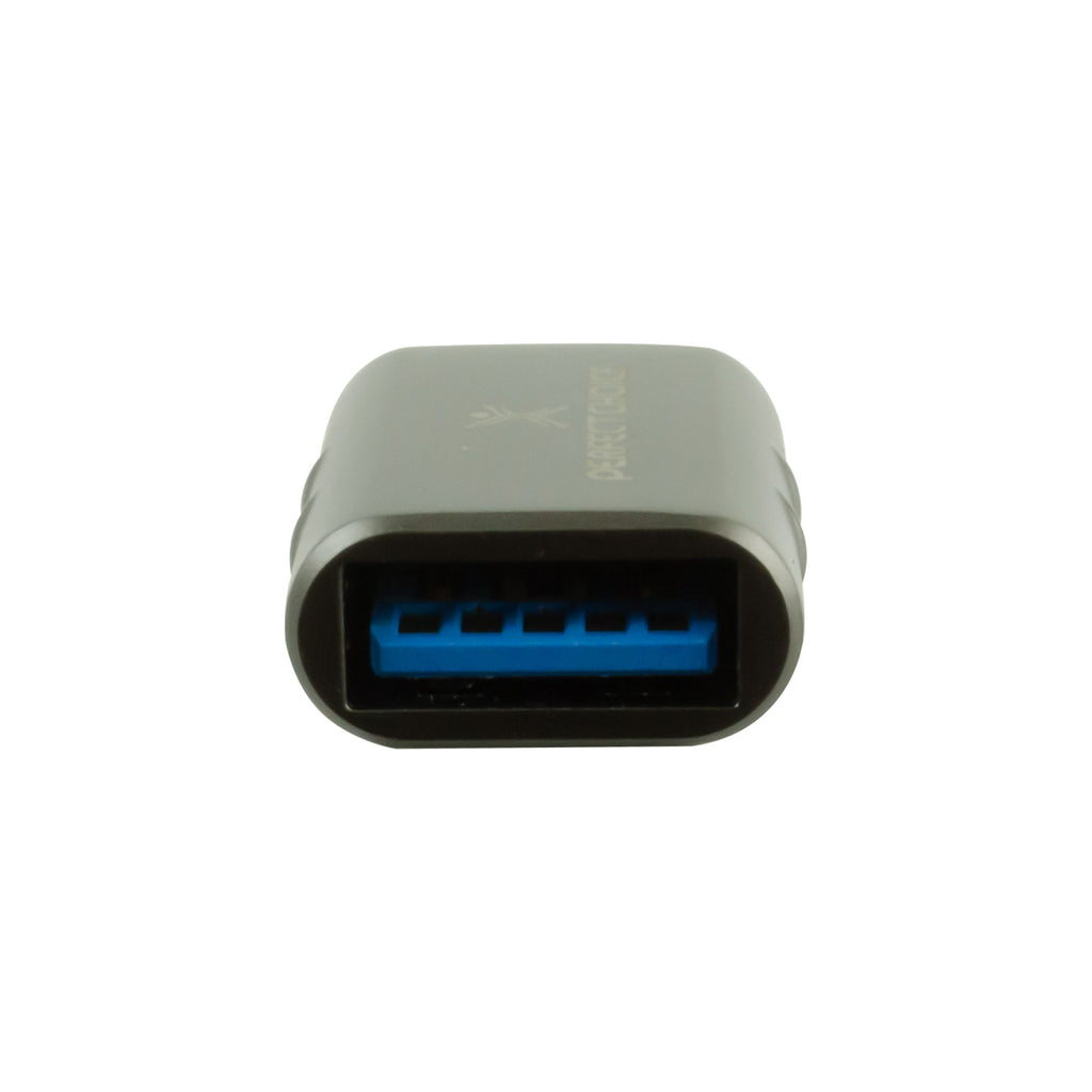 Mini adaptador de USB C a USB A, diseño elegante y compacto. Permite sincronización (transferencia de datos) hasta 5Gb. Cuenta con carga de dispositivos compatible con 2.0 y 3.0 y función OTG (On The Go)