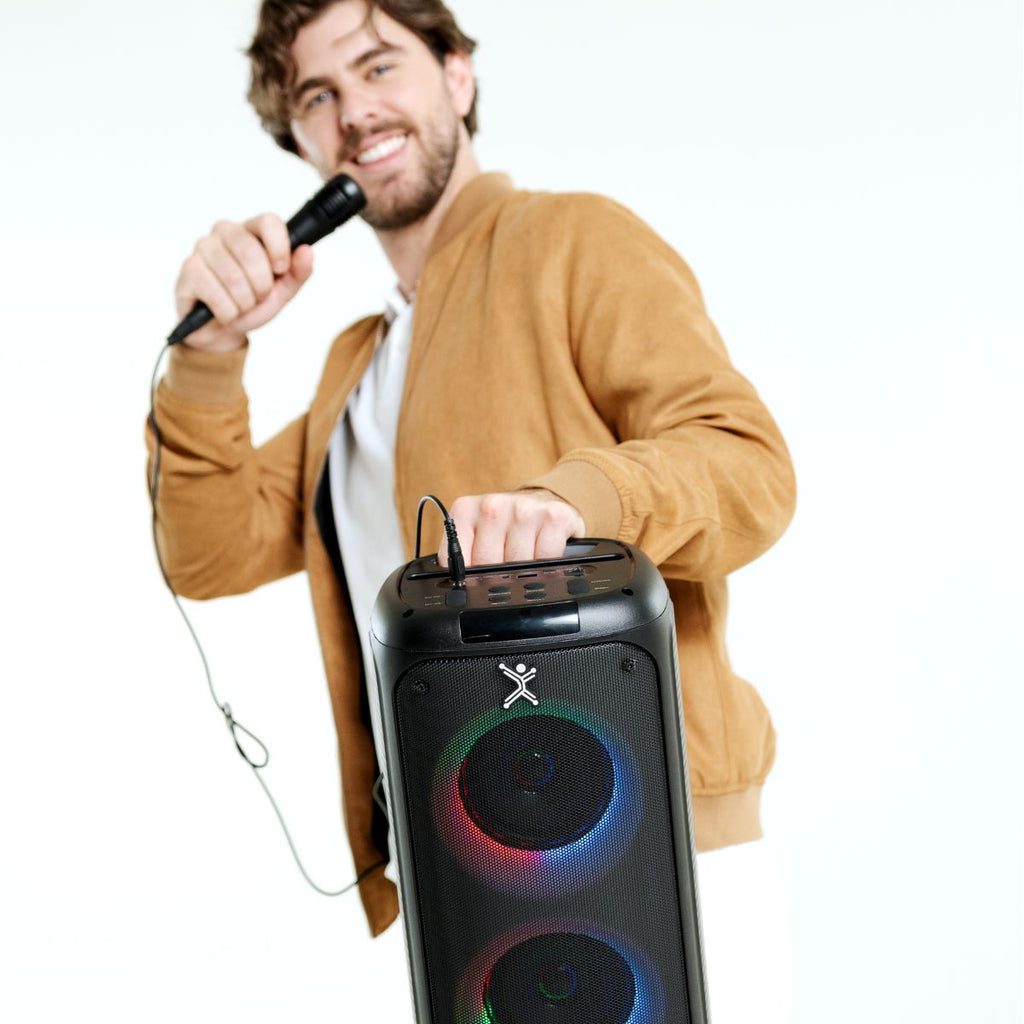 Lleva tu música y entretenimiento a otro nivel con Miniglow de Perfect Choice, un mini bafle portátil que combina audio dinámico, efectos visuales y funcionalidad versátil. Sus drivers duales de 5"" ofrecen sonido claro y balanceado, ideal para reproducir playlists, podcasts y contenido multimedia tanto en interiores como en exteriores.