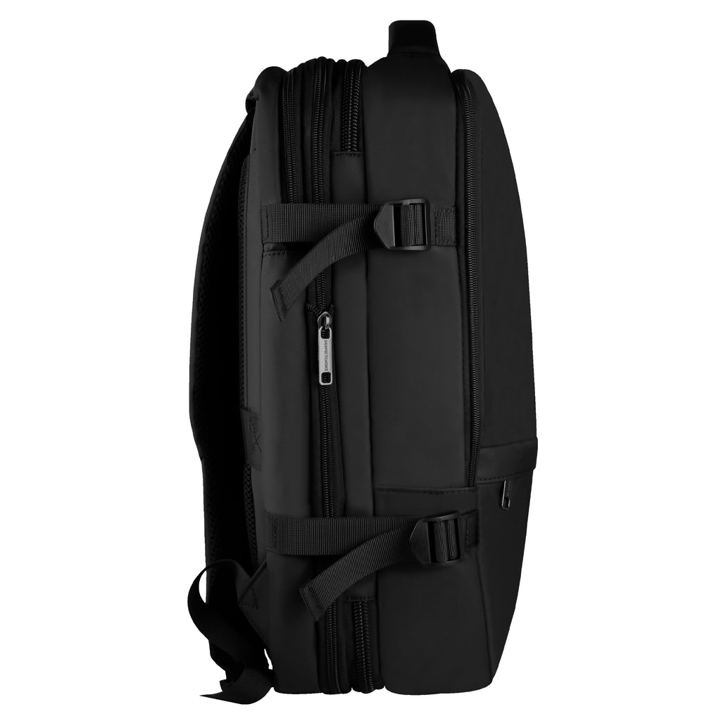 Pensada para quienes viajan con frecuencia, Travela ofrece la combinación perfecta entre capacidad, organización y comodidad. Su diseño expandible permite adaptarse a diferentes tipos de viaje, mientras que el compartimento para laptop mantiene tus dispositivos seguros en todo momento. Gracias a su banda para sujetarla a la maleta, moverte por aeropuertos o terminales se vuelve mucho más fácil. Con múltiples bolsillos, materiales resistentes y un estilo moderno, se convierte en una opción ideal para viajeros ejecutivos, estudiantes y personas que necesitan una mochila versátil que se adapte a cada jornada. Travela reúne funcionalidad, comodidad y espacio en un diseño pensado para acompañarte a donde vayas.
