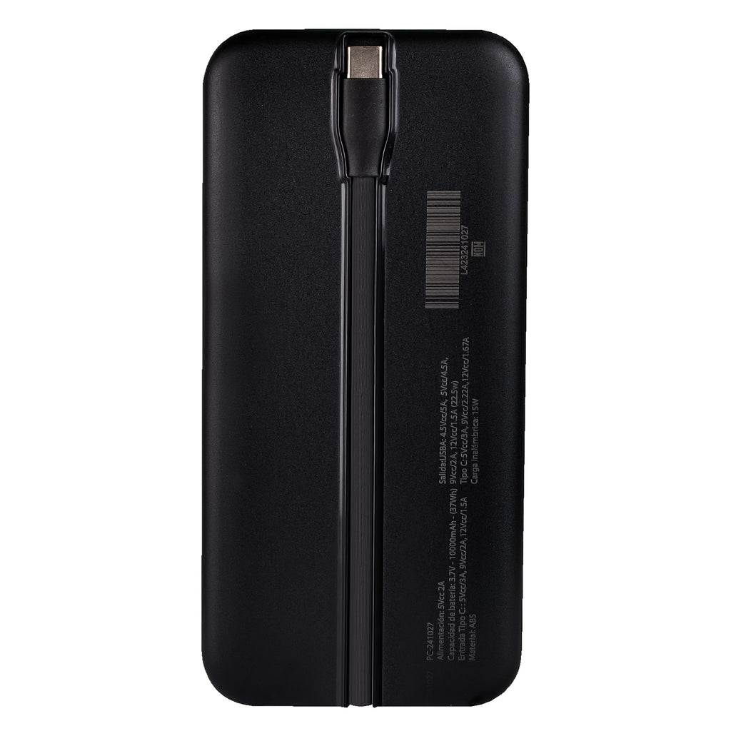 Cable Tipo C Integrado: Este power bank incluye un cable Tipo C integrado que puedes usar en cualquier momento, facilitando la carga de otros dispositivos compatibles.